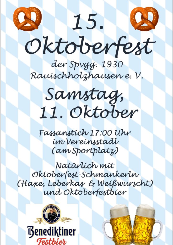 In den nächsten Wochen wir wieder einiges los sein bei der Spvgg.! Am 11. Oktober findet unser 15. Oktoberfest im Vereinsheim statt und am 31.10. wird zum ersten Mal eine Halloweenparty gefeiert. Am 08. November folgt dann das traditionelle Schlachteessen in Kooperation mit „Woschtwellner“.