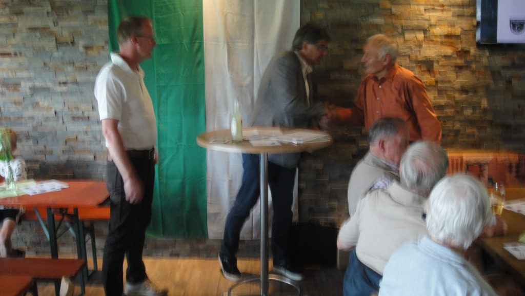 - Tischtennis: JubiläumsturnierDas Jubiläums-Kurzturnier bestritten Heinrich Sauer, Jürgen Bier, Werner Baldreich und Reinhard Grün. Mit Heinrich und Werner, waren zwei Spieler der ersten Stunde an der Platte. Der Spaß am Spiel stand im Vordergrund, daher ist die Reihenfolge der Platzierung eigentlich zweitrangig, aber Chronistenpflicht. Jürgen, konnte alle 3 Spiel gewinnen, ihm folgte Reinhard vor Heinrich und Werner. Dabei mussten Jürgen und Reinhard schon alle Register ziehen, um jeweils im 5. Satz gegen Heinrich zu gewinnen. Im Doppel konnten sich Jürgen und Werner im 5. Satz gegen Heinrich und Reinhard durchsetzen.